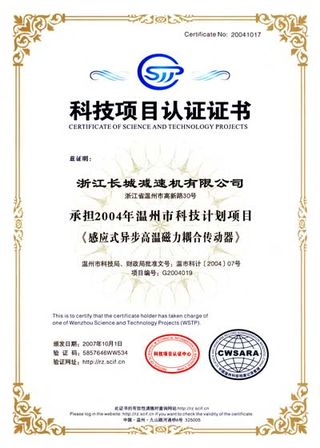 由公司技術人員攻關的網(wǎng)上招投標“感應式異步高溫磁力耦合傳動器”項目,日前獲得溫州科技項目認證中心認證。該項目是我公司承擔的2004年溫州市科技計劃項目之一。