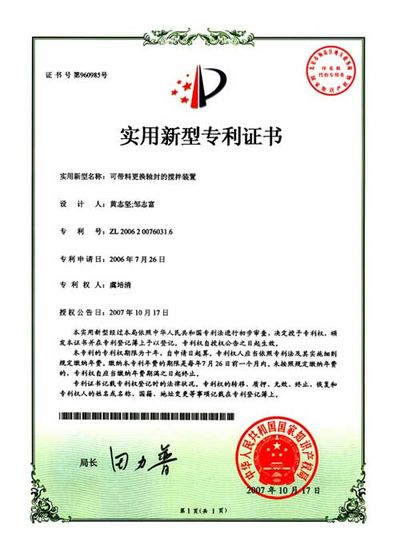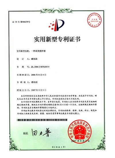 ZL 2006 2 0076205.9 一種高效攪拌器
