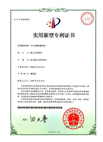 ZL 2006 2 0076765.4 中空式螺帶攪拌器