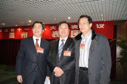 虞總與溫州市委書記王建滿(中)及民進(jìn)溫州市委副主委周德文(左)合影