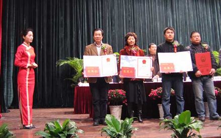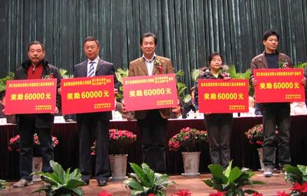 公司“浙江省名牌產(chǎn)品”和“浙江省著名商標(biāo)”榮譽(yù)獲得獎(jiǎng)勵(lì)6萬元,虞培清總經(jīng)理(中)代表企業(yè)上臺(tái)領(lǐng)獎(jiǎng)