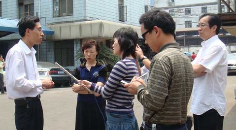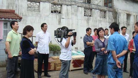 電視臺(tái)記者采訪公司內(nèi)家中受災(zāi)員工情況: