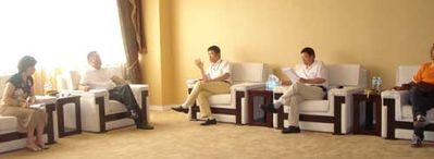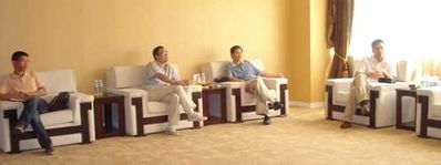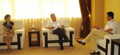 我公司副總金友香(左)和研究所所長(zhǎng)兼技術(shù)中心主任周?chē)?guó)忠博士(右)正在與市科技局王北鉸局長(zhǎng)(中)會(huì)談