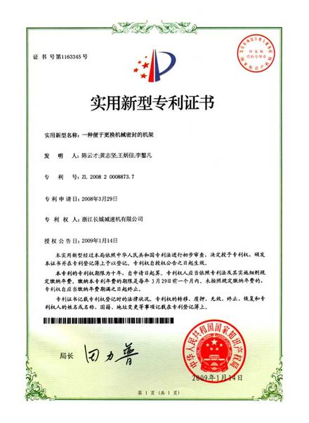 日前,由我公司自主研發(fā)的兩項產品正式獲得實用新型專利授權。此兩項產品分別為“一種新型固液懸浮攪拌器”和“一種便于更換機械密封的機架”。其中“一種新型固液懸浮攪拌器”與傳統(tǒng)攪拌器相比在達到同等攪拌效果的情況下可節(jié)省50%的能量。而“一種便于更換機械密封的機架”則在攪拌裝置中的機械密封更換維修時不再需要拆卸吊離減速機和機架這些繁瑣費力的工序,可直接借助機架的特殊設計功能方便地進行機械密封的更換維修。