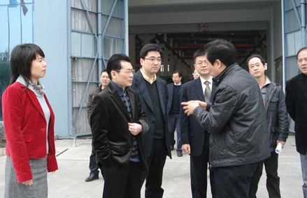 虞培清董事長(zhǎng)(左)陪同余中平區(qū)長(zhǎng)(中)等區(qū)府領(lǐng)導(dǎo)參觀我公司新廠區(qū)