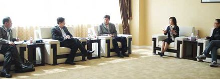公司常務(wù)副總金友香(右二)向蒞臨領(lǐng)導(dǎo)介紹企業(yè)應(yīng)對經(jīng)濟(jì)危機方面情況
