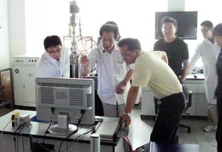 參觀實(shí)驗(yàn)室:虞董向王區(qū)長(zhǎng)講解PIV實(shí)驗(yàn)原理