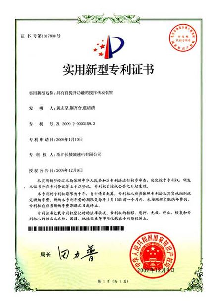ZL 2009 2 0003159.3   具有自提升功能的攪拌傳動(dòng)裝置