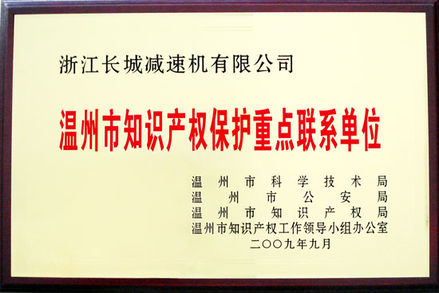 溫州市知識產(chǎn)權(quán)保護重點聯(lián)系單位 牌匾