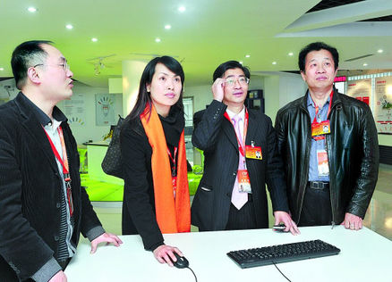 1月27日下午,來自溫州代表團(tuán)的省人大代表周德文、虞培清,利用會(huì)議間隙,來到我省首家創(chuàng)業(yè)板上市公司——浙江銀江電子股份有限公司進(jìn)行考察。他們詳細(xì)了解企業(yè)運(yùn)作模式,為溫州傳統(tǒng)產(chǎn)業(yè)的轉(zhuǎn)型升級尋找思路。(圖片: 吳元峰 蕭云集 攝)