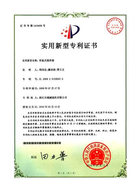 ZL 2009 2 0125047.5 穿流式攪拌器