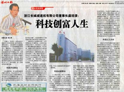 在溫州,有這么一家企業(yè)由科技起家,憑科技發(fā)展,靠科技致富,因科技壯大,這就是浙江長城減速機有限公司。作為長城減速機的帶頭人,虞培清以一己之力開創(chuàng)出中國一個全新行業(yè)———攪拌設(shè)備行業(yè)則是這些奇跡中的典范。目前,長城減速機既是國內(nèi)成套攪拌設(shè)備設(shè)計、制造的龍頭企業(yè),更是全國攪拌設(shè)備行業(yè)標準的唯一制定者。作為長城減速機的旗手,虞培清在締造國內(nèi)攪拌設(shè)備頂尖企業(yè)的同時也為自己打開了一條財富路,這一切皆由科技創(chuàng)新而起。