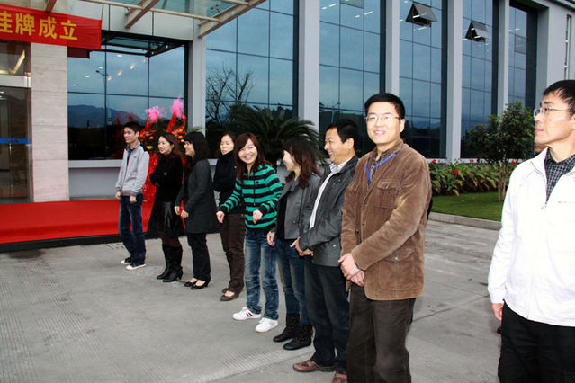 市委組織部副部長徐強(qiáng)中(右)和公司董事長虞培清(中)共同主持掛牌儀式