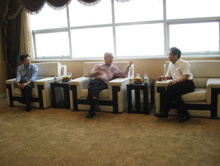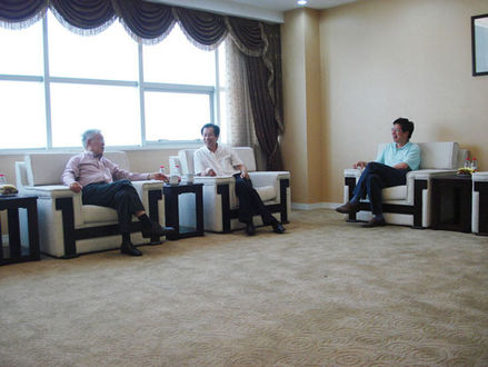 (圖為在會議室里。左(龍教授) 中(袁渭康院士) 右(我公司董事長虞培清))