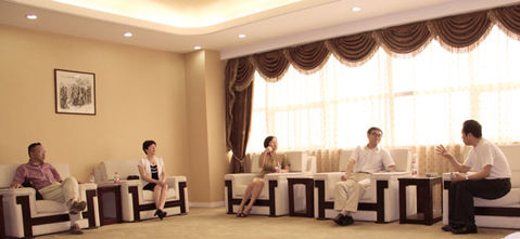 在公司待客會(huì)議室里,領(lǐng)導(dǎo)們侃侃而談,公司董事長(zhǎng)虞培清熱情地向區(qū)領(lǐng)導(dǎo)們介紹了我公司的發(fā)展?fàn)顩r以及未