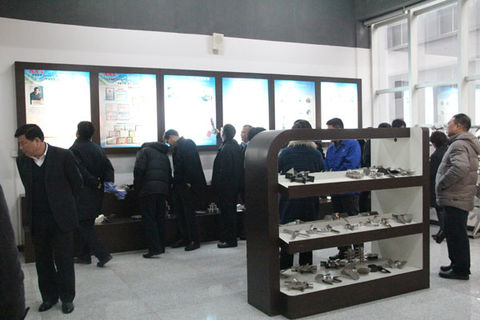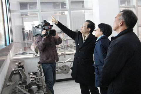 剛下車,各位領(lǐng)導(dǎo)駐足公司門前的榮譽墻前,贊嘆公司的能力(圖中我司虞董為肖書記介紹)