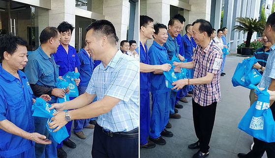 8月16日上午10時,鹿城區(qū)工會副主席方克鵬、輕工園區(qū)工會副主席徐增田帶隊來到我司,對一線員工進行慰問,并囑咐他們高溫天氣的注意休息。我司總經理虞淑瑤博士、工會主席夏建敏同志等也非常重視員工去暑工作,詳細講解了公司去暑方法,得到工會領導的高度認可,同時也感謝區(qū)工會給我們送來的慰問與關懷。