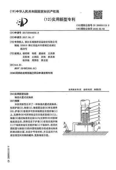 熱烈祝賀我司“軸套內置式底軸承”獲國家實用新型專利
