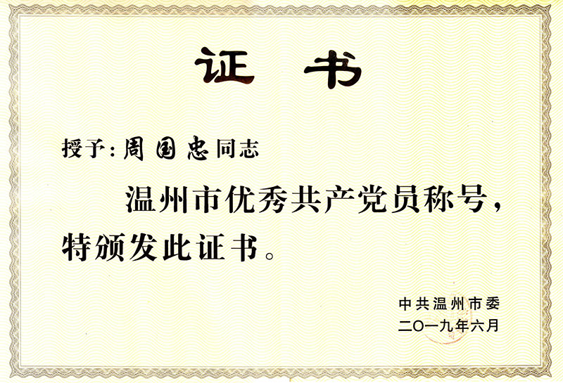 溫州市優(yōu)秀共產(chǎn)黨員稱號(hào)