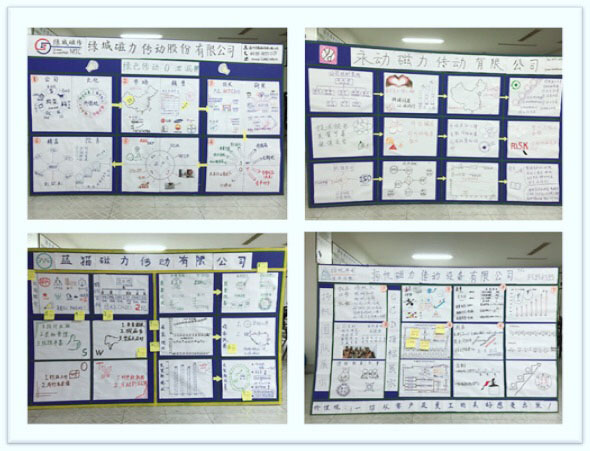 第二日:四個“公司”進行了新一輪的PK,每個公司的版面邏輯、目視化、標(biāo)準(zhǔn)化相較于首次設(shè)計有很大的提升,并且輸出了十個改善點。每個團隊也達(dá)到全員參與和匯報。尤其是綠城隊,團隊協(xié)作能力強,積極參與程度高,版面內(nèi)容豐富、充實。時間把控也得當(dāng)。獲得了第一名的佳績。
