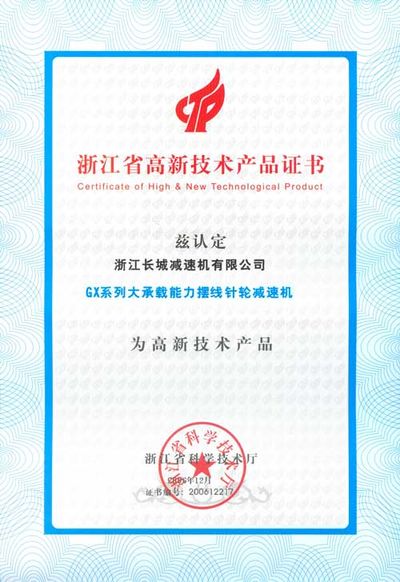 公司兩項(xiàng)新產(chǎn)品IMC型感應(yīng)式異步高溫磁力耦合傳動(dòng)器和GX系列大承載能力擺線針輪減速機(jī)獲浙江省高新技術(shù)產(chǎn)品證書(shū)。