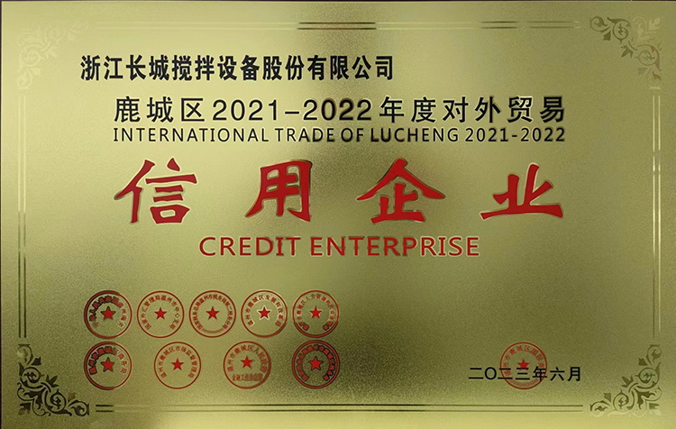 與此同時(shí)我司在今年6月份,還榮獲“鹿城區(qū)2021-2022年度對外貿(mào)易信用企業(yè)”。新冠疫情過后,公司將進(jìn)一步擴(kuò)大海外市場,提高長城品牌在國際攪拌市場的影響力,打造屬于世界的長城攪拌!