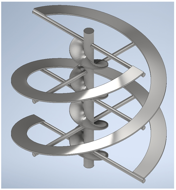 2.有效分割:螺帶外圍均勻分布的橫檔在旋轉(zhuǎn)過程中對物料進行有效的分割,這樣可以增加物料之間的接觸面積,促進混合均勻。