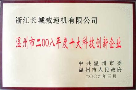 我公司獲得溫州市2008年度十大科技創(chuàng)新企業(yè)榮譽(yù)