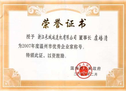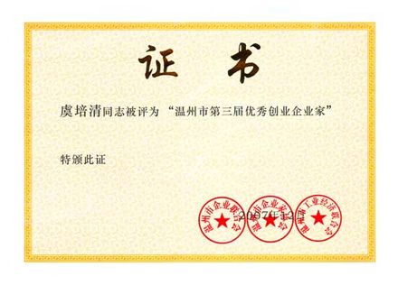我公司董事長虞培清獲得“溫州市第三屆優(yōu)秀創(chuàng)業(yè)企業(yè)家”榮譽(yù)