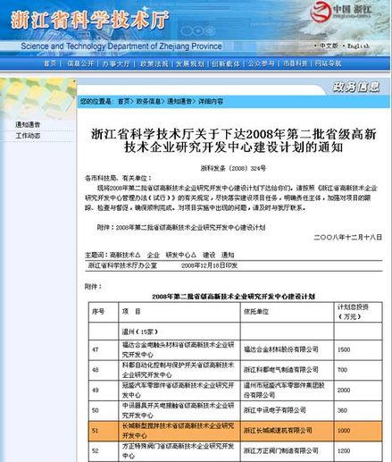 近日,我公司申報(bào)的“長(zhǎng)城新型攪拌技術(shù)省級(jí)高新技術(shù)企業(yè)研究開發(fā)中心”項(xiàng)目正式獲得批準(zhǔn)。 浙江省科學(xué)技術(shù)廳網(wǎng)上公布 省級(jí)高新技術(shù)企業(yè)研究開發(fā)中心 牌匾