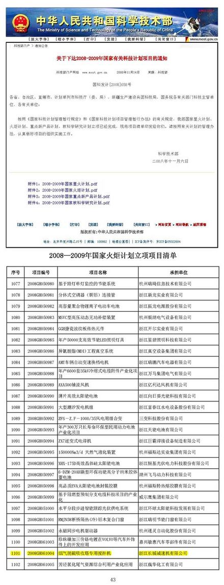 近日,我公司申報(bào)的“煙氣脫硫吸收塔專用攪拌機(jī)”獲2008年國(guó)家火炬計(jì)劃項(xiàng)目立項(xiàng)。 中華人民共和國(guó)科學(xué)技術(shù)部網(wǎng)上公示 “煙氣脫硫吸收塔專用攪拌機(jī)”國(guó)家火炬計(jì)劃項(xiàng)目證書